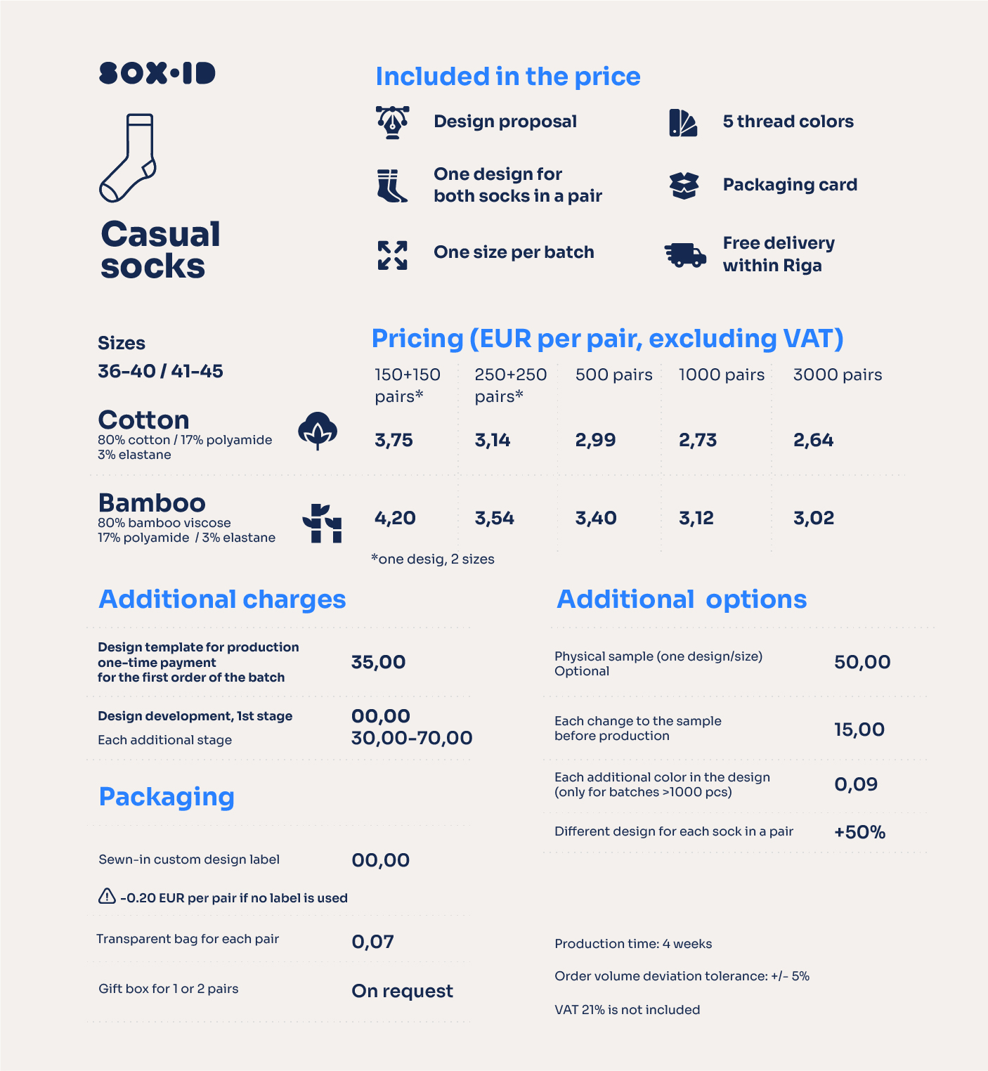 We use high-quality materials, applying them to the function of the socks and the client's preferences. All materials have bright and durable colors.